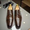 Para manter a qualidade do seu sapato, evite contato com água em excesso e produtos químicos agressivos. Use uma flanela macia para limpeza e hidrate o couro regularmente com cera ou creme específico. Após o uso, armazene em local arejado para preservar sua forma e acabamento.