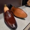 Para manter a qualidade do seu sapato, evite contato com água em excesso e produtos químicos agressivos. Use uma flanela macia para limpeza e hidrate o couro regularmente com cera ou creme específico. Após o uso, armazene em local arejado para preservar sua forma e acabamento.